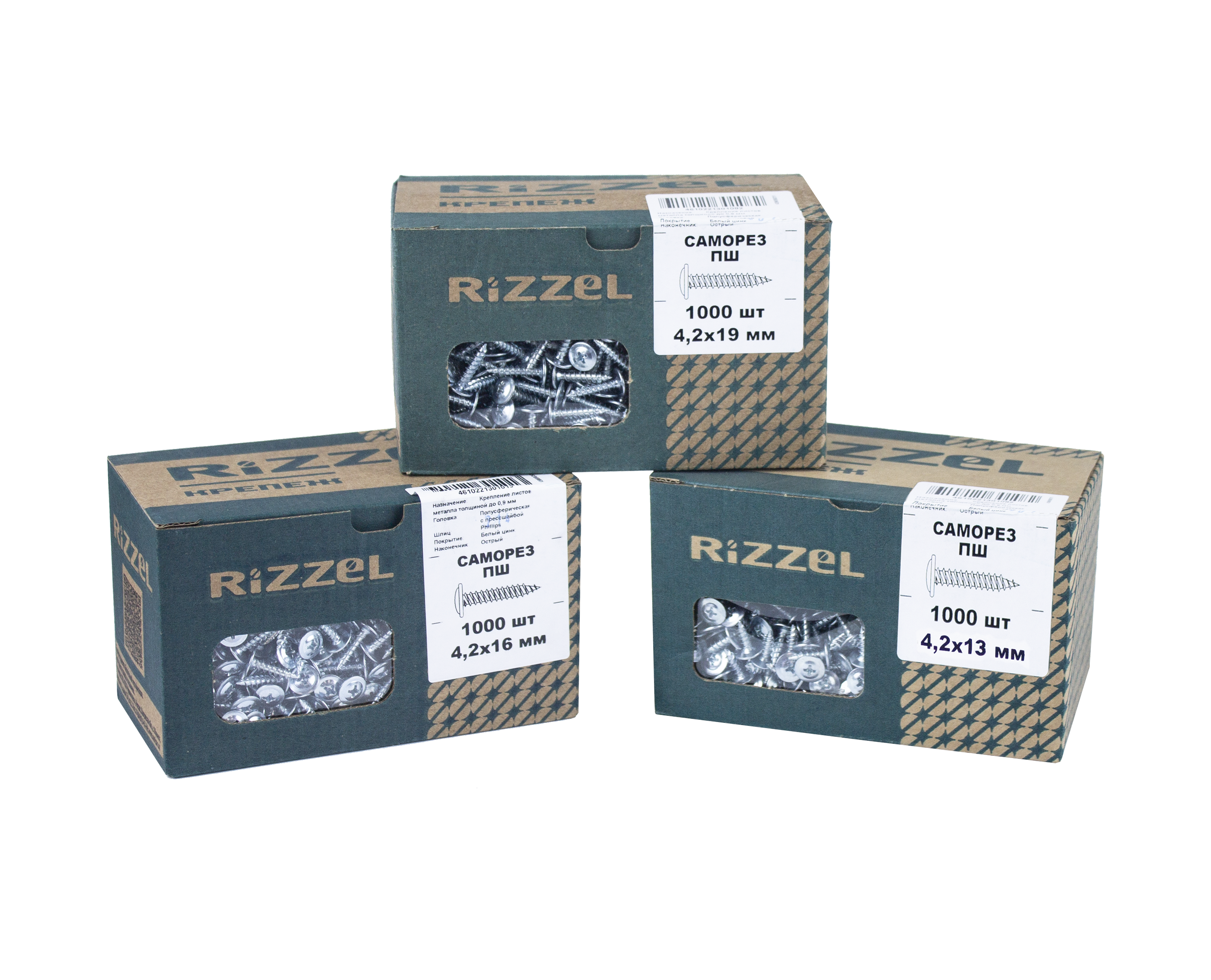 Саморез ПШ Rizzel 4,2х32 (500шт) шлиц PH2, цинк